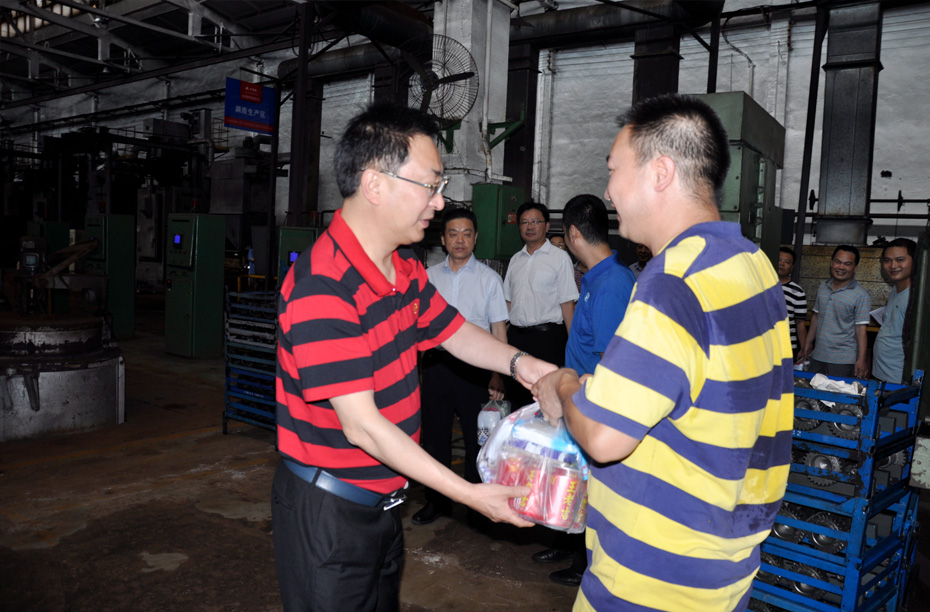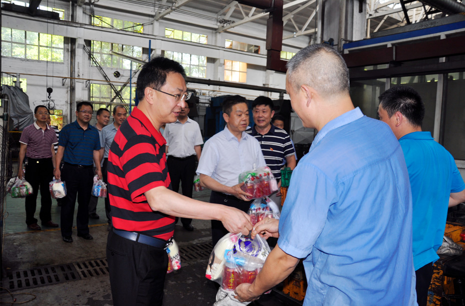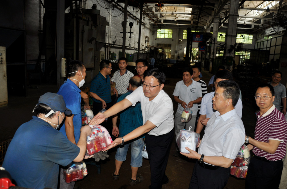 機電集團公司副總經(jīng)理劉永剛,公司領(lǐng)導在高溫天氣到生產(chǎn)現(xiàn)場慰問一線員工