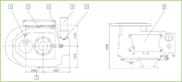 •輸入端與電機(jī)聯(lián)接、輸出端同軸