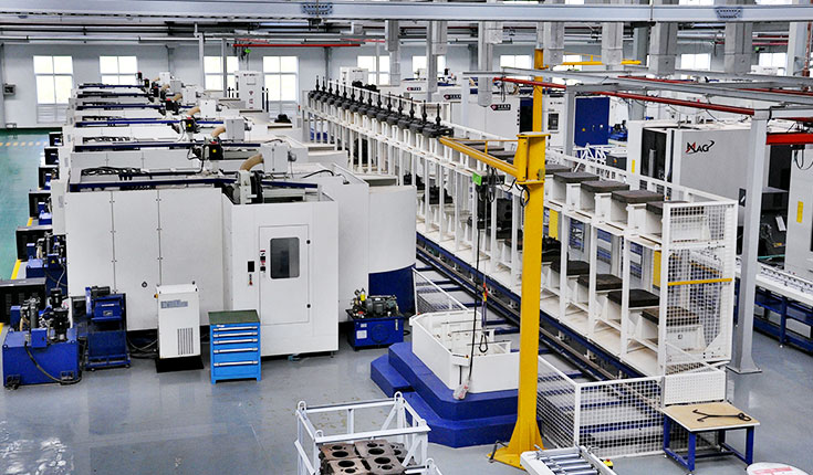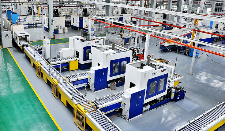 殼體加工自動線,產(chǎn)品合格率99.9999999%這是由5條先進的生產(chǎn)線組成的智能加工組,實施在線檢測,保證產(chǎn)品的精準度,保障產(chǎn)品質(zhì)量。小車自動將上好料的托盤運送到機床內(nèi)加工完成并送到下料工位,產(chǎn)品加工完后經(jīng)兩條自動物流線自動運輸,經(jīng)過清洗機清洗,通過檢漏機檢漏后下線。產(chǎn)品合格率達到了99.9999999%。