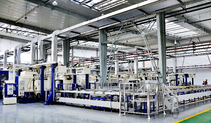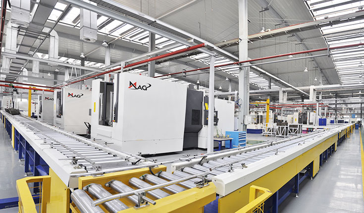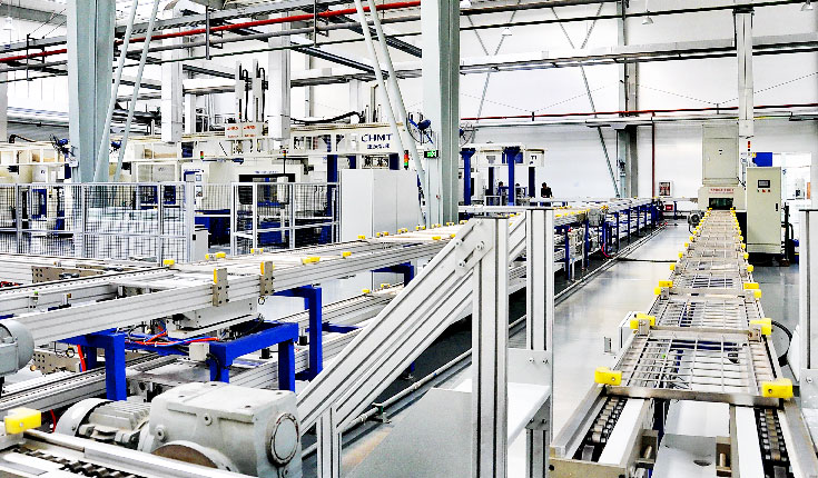 “國家數(shù)控e代”技術(shù),智能化生產(chǎn)熱前齒輪加工區(qū)共有五條自動線,大幅度節(jié)約了人工成本的同時也提高了生產(chǎn)效率。利用“國家數(shù)控e代”技術(shù),實現(xiàn)智能化生產(chǎn);整線采用桁架機器人連線生產(chǎn),實現(xiàn)少人化加工;自動線和物流無縫銜接,實現(xiàn)自動物流。