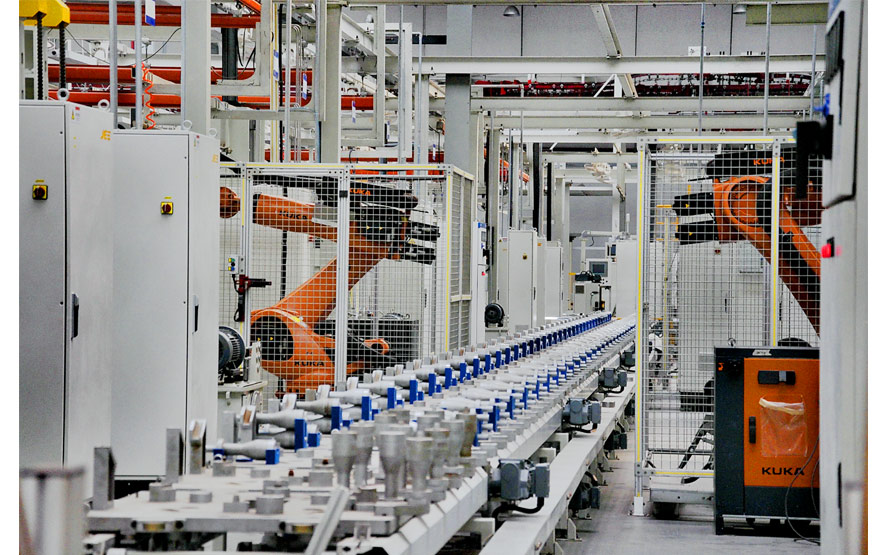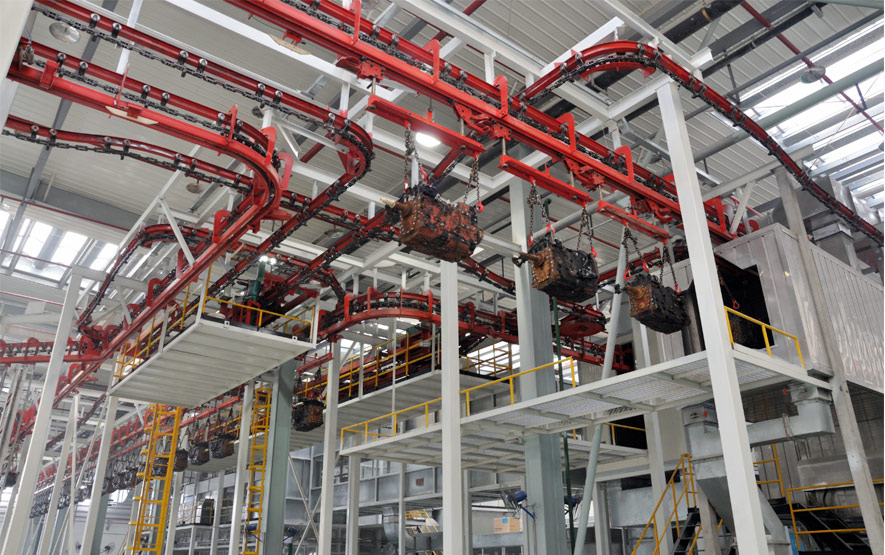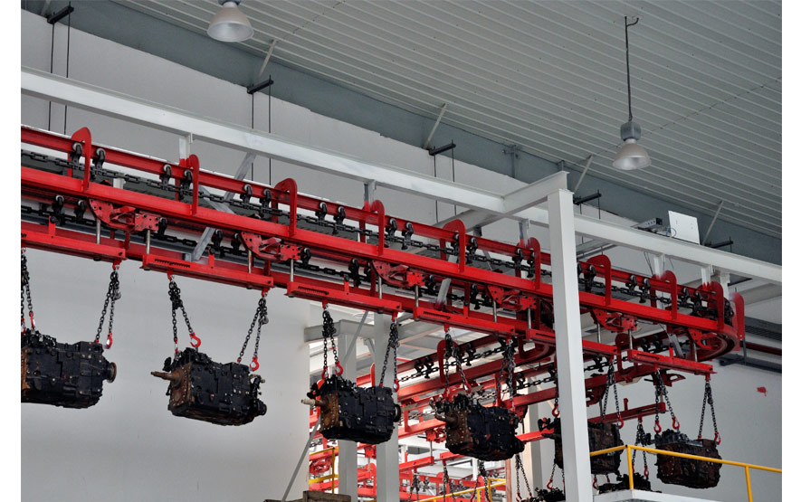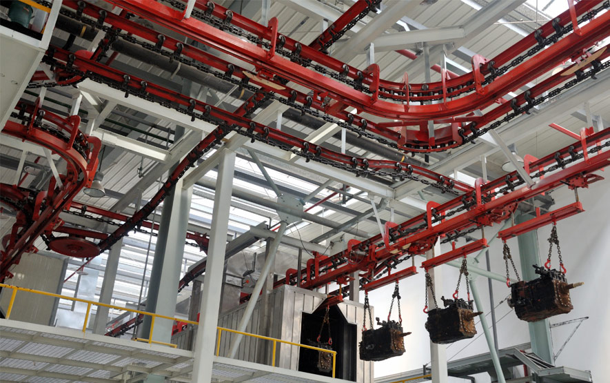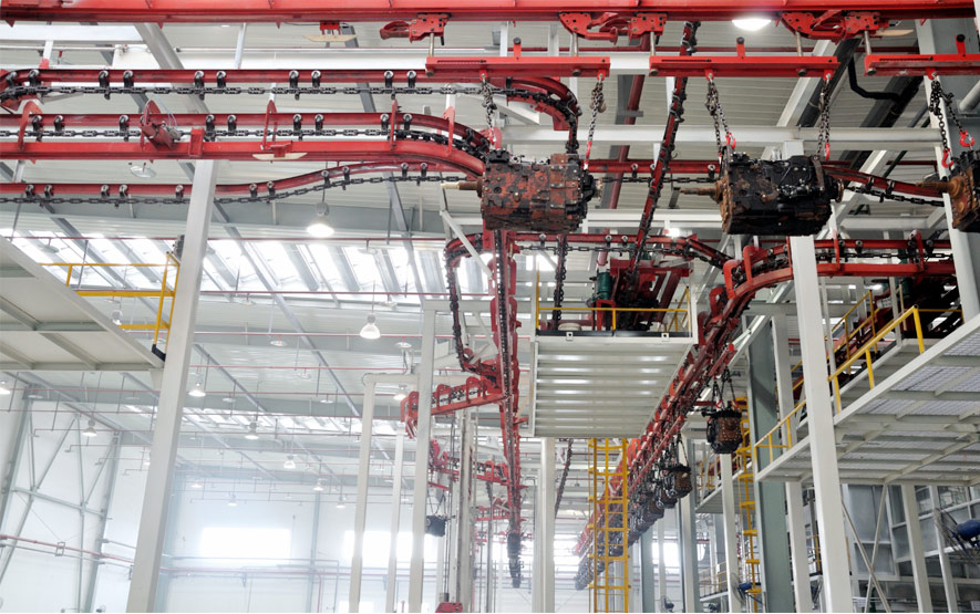 總成涂裝自動線,實現(xiàn)無人化噴涂這里采用積放鏈支撐整個涂裝線運作,全程智能操作,實現(xiàn)對合格總成的自動化清洗、風干、機器人噴漆、流平、烘烤和冷卻。實現(xiàn)全系列變速器混線生產(chǎn),整線采用2臺機器人實現(xiàn)無人化噴涂,采用數(shù)據(jù)管理系統(tǒng),實現(xiàn)過程控制。