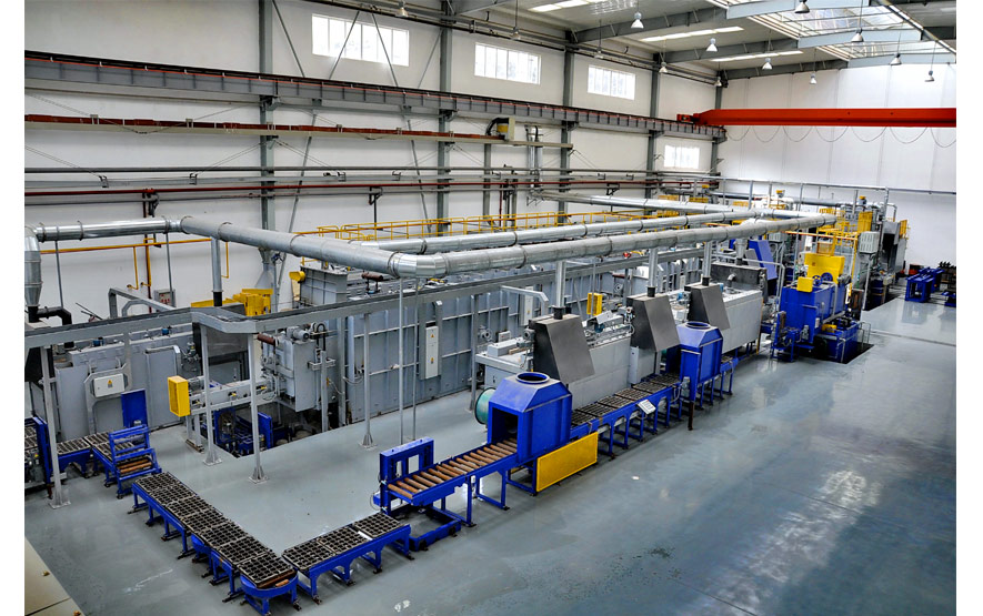 熱處理加工流水線,連線自動化生產(chǎn)由兩條連續(xù)爐、三臺多用爐組成,加上先進的應力噴丸機和一套完整的滲碳淬火檢驗設(shè)備,使得產(chǎn)品質(zhì)量得以保障。采用連線自動化生產(chǎn),實現(xiàn)少人化加工。采用的“強化噴丸”技術(shù),針對產(chǎn)品需要強化部位集中噴丸加工,實現(xiàn)產(chǎn)品局部提高強度,節(jié)約能源并提高產(chǎn)品質(zhì)量。